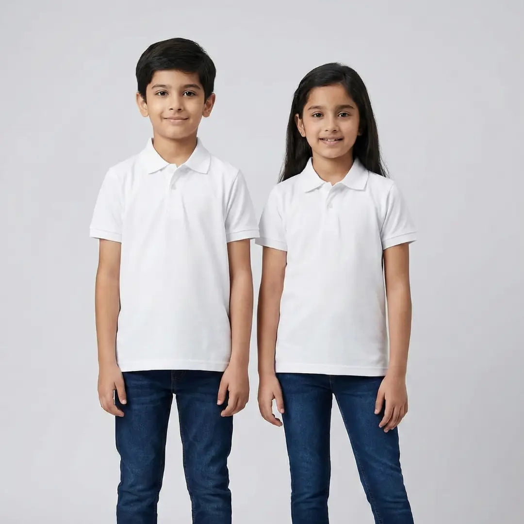 Elovery Kids White Polo Shirt – Unisex Cotton Polo Tee